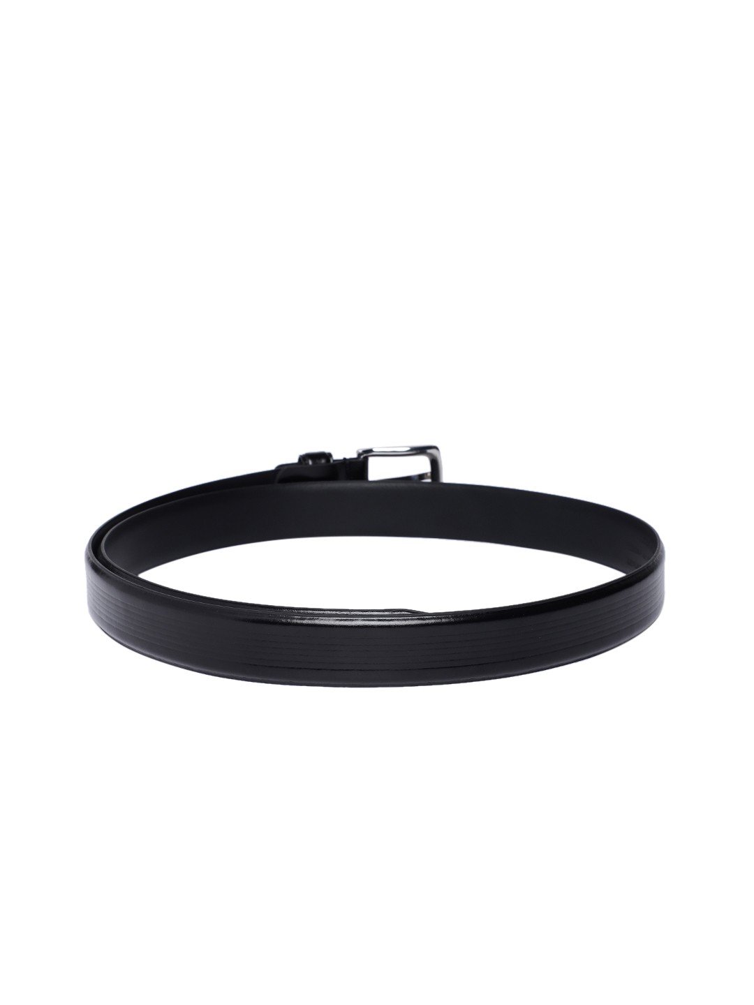 Black self striped leather belt Secured with a tang closure Warranty: 6 months Warranty provided by brand owner/manufacturer Size & Fit Width: 3 cm Material & Care Leather Wipe with a clean dry cloth