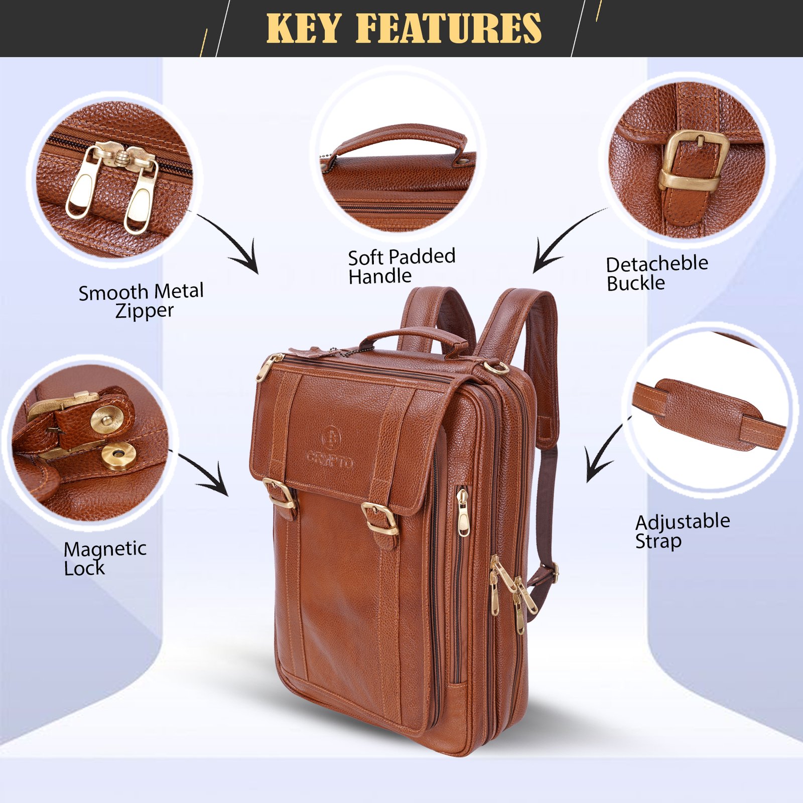 3 main compartment with zip closure, has padded laptop sleeve