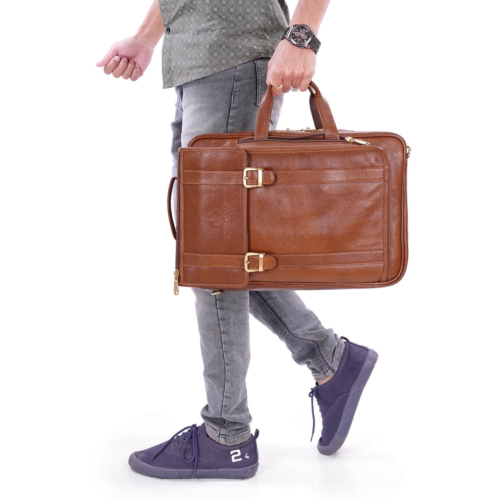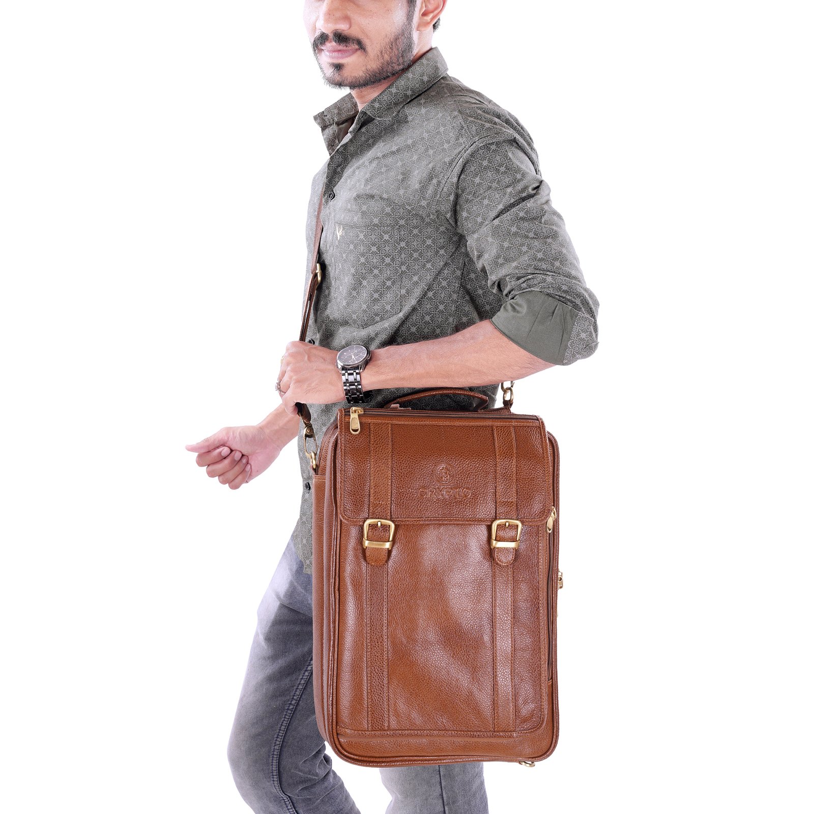 Brown solid laptop bag