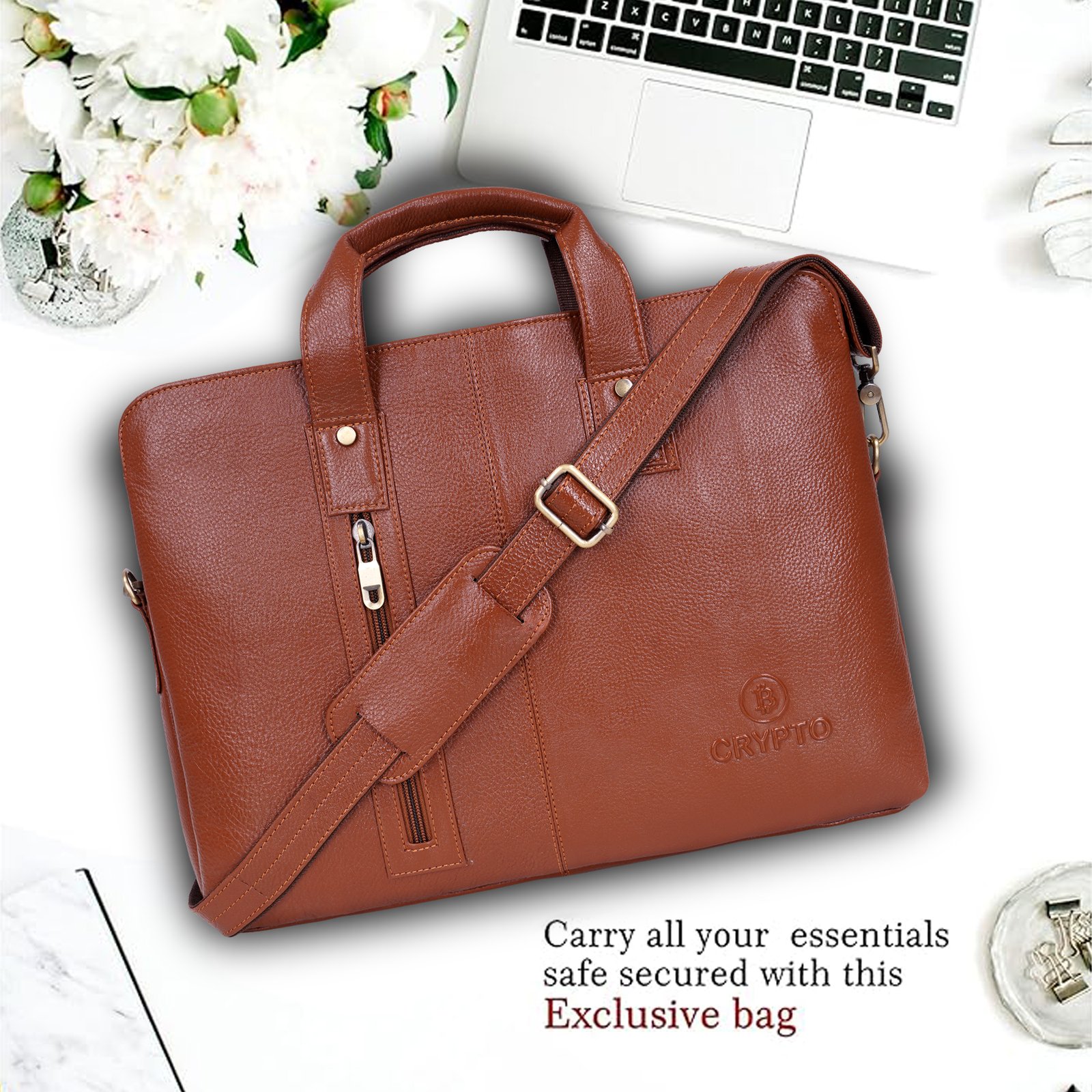 Crypto Brown solid laptop bag