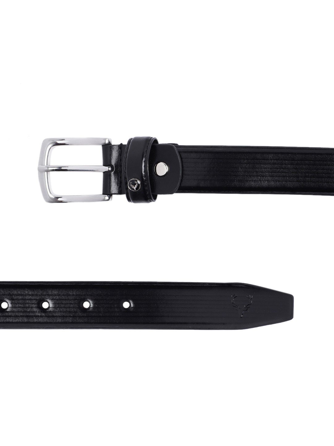Black self striped leather belt