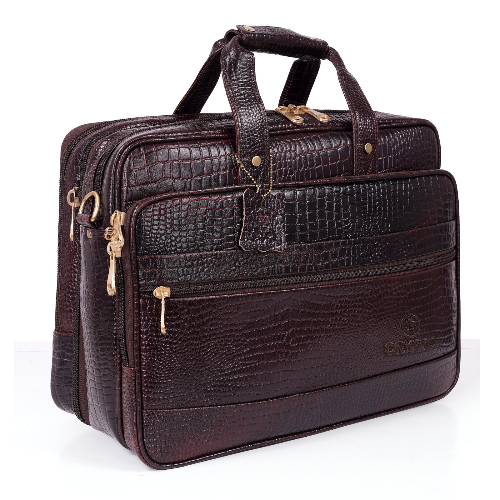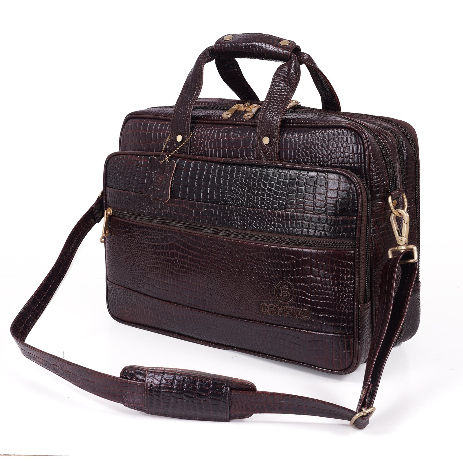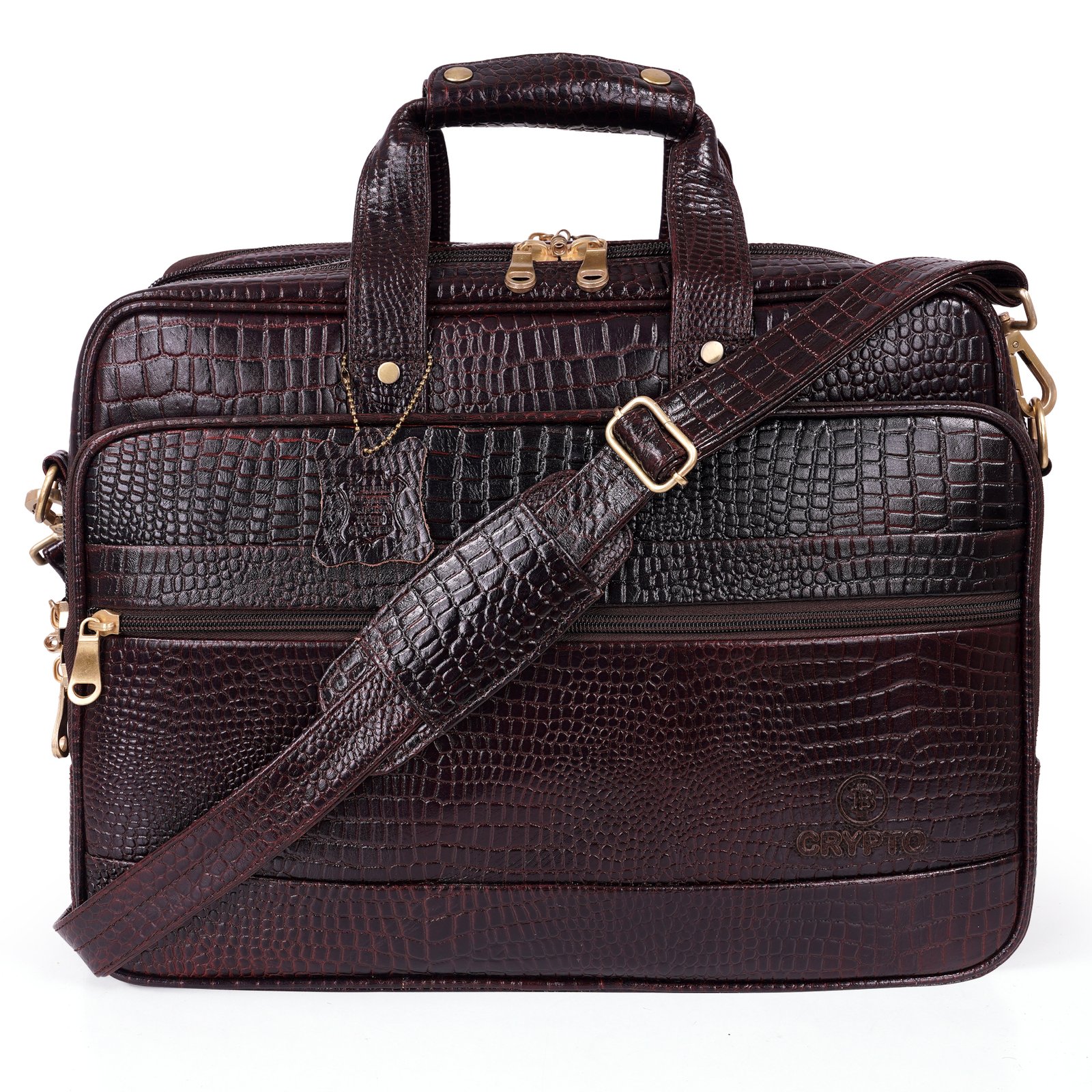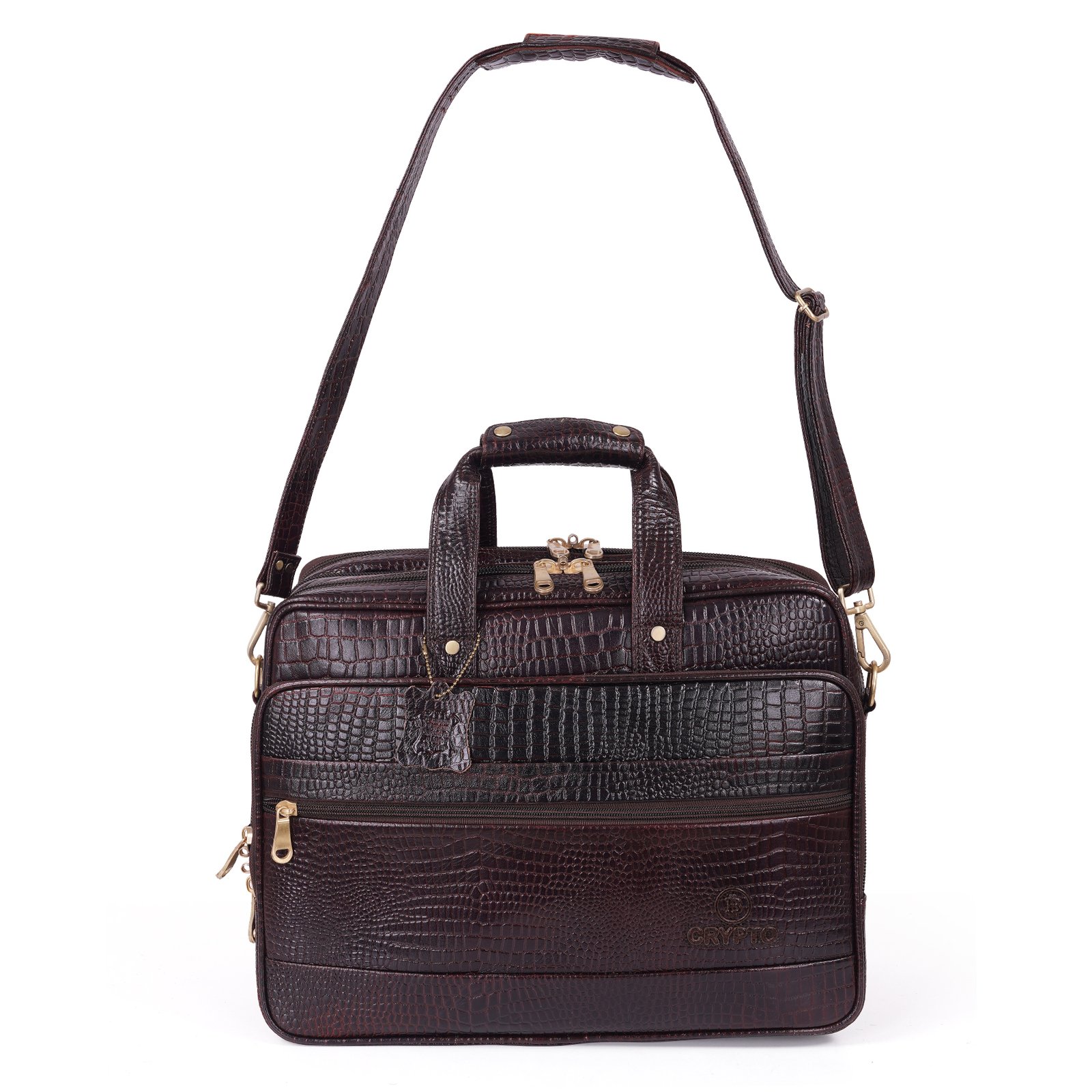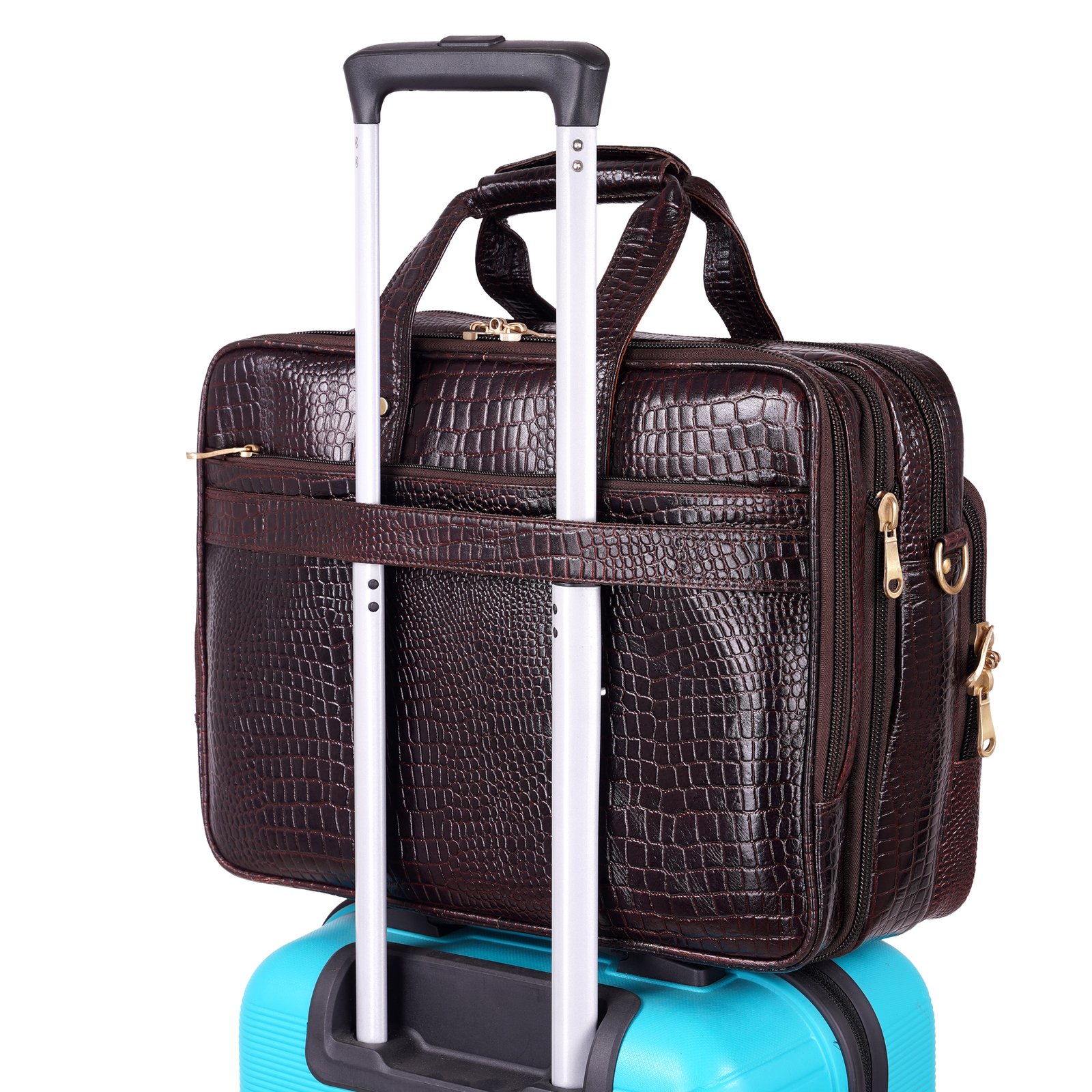 This slim leather bag is crafted from premium crocodile-embossed leather in a rich burgundy tone, combining style with functionality. Featuring multiple zippered compartments, gold-tone hardware, and a detachable shoulder strap, it is perfect for professionals seeking a sleek and organized carry solution. Ideal for daily commutes, business meetings, or travel.