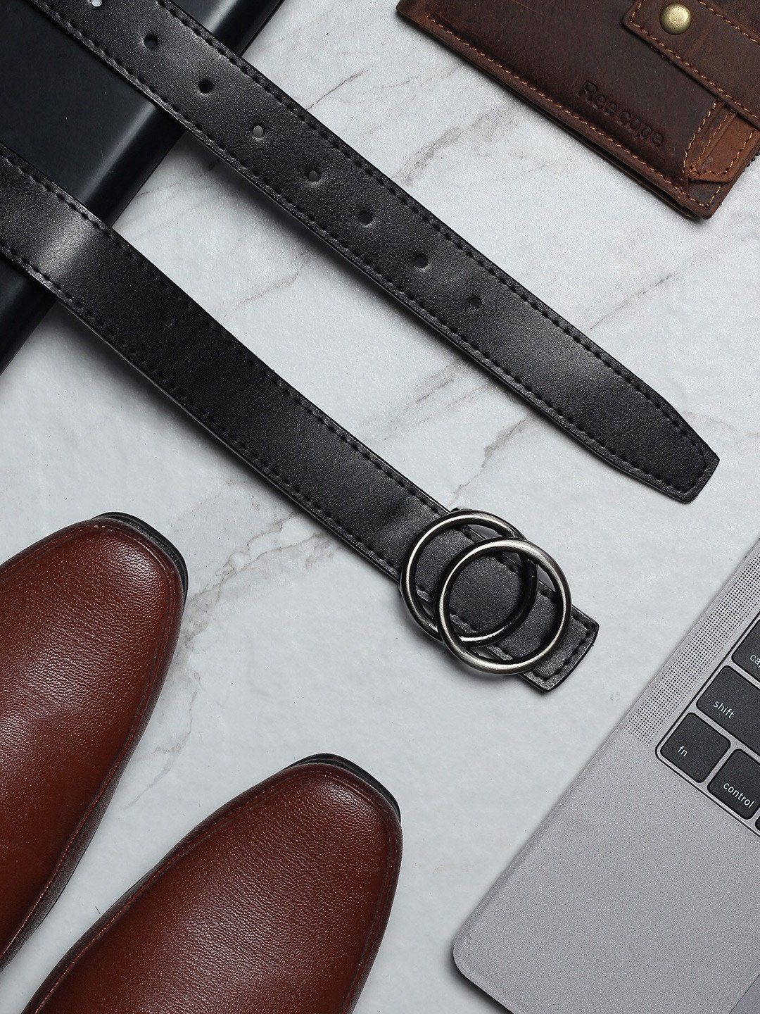 Black solid synthetic leather belt Secured with a push pin closure Warranty: 3 months Warranty provided by brand owner/manufacturer Size & Fit Width : 3 cm Fits waist 26″-30″ Material & Care Synthetic Leather Wipe with a clean, dry cloth to remove dust